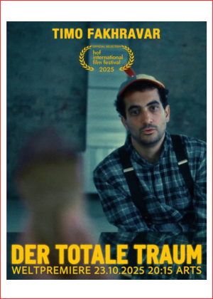am 23.10.2025 feiert der totale traum mit timo fakhravar auf den internationalen hofer Filmtagen (21.10.-26.10.) premiere.